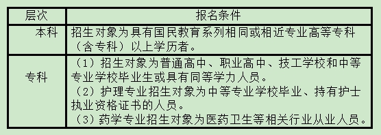 按照國(guó)家開(kāi)放大學(xué)規(guī)定,2024年春季各專業(yè)報(bào)名學(xué)生年齡需年滿17周歲(2007年3月31日(含)前出生),并按所報(bào)考層次分別滿足下列條件: